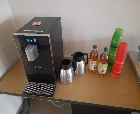Den Hortkindern stehen täglich gesunde Getränke im Speiseraum bereit.